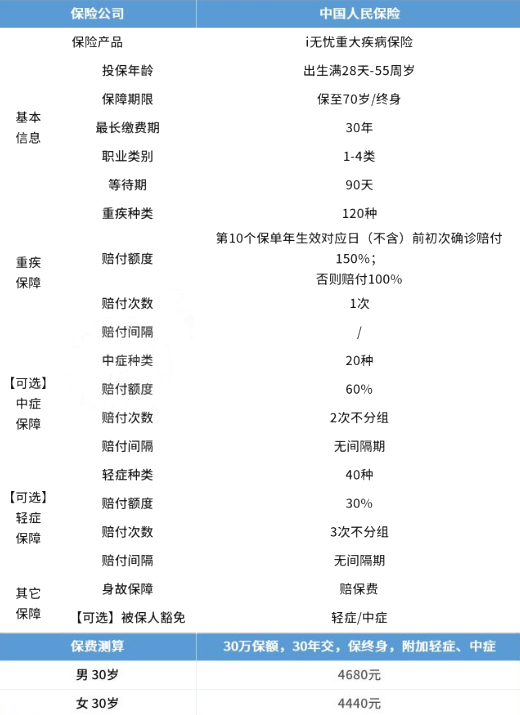 图全心保(基础计划)包含了重疾、中症、轻症和豁免保障。保费上面,50万保额,30年交,30岁成人每年保费折算后在6000多,适合倾向于大公司、预算有限的朋友。