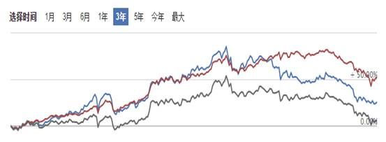 上图的近三年业绩,基本就是第二个封闭期的业绩。红色是同类基金的平均收益,蓝色是东方红睿轩的收益,下面这条是沪深300指数的收益。它跑赢了指数,但是很明显看到它连平均收益都没有达到。