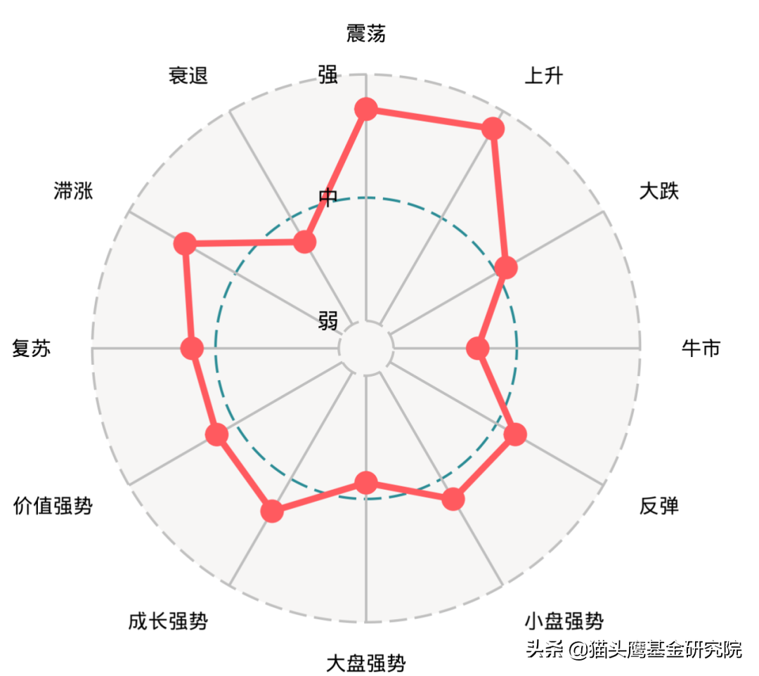 从蜘蛛图上可以看到,在三年多的时间里,东方红睿元经历不同阶段的市场风格,展现出了较为优秀的市场适应性表现。我们可以看到: