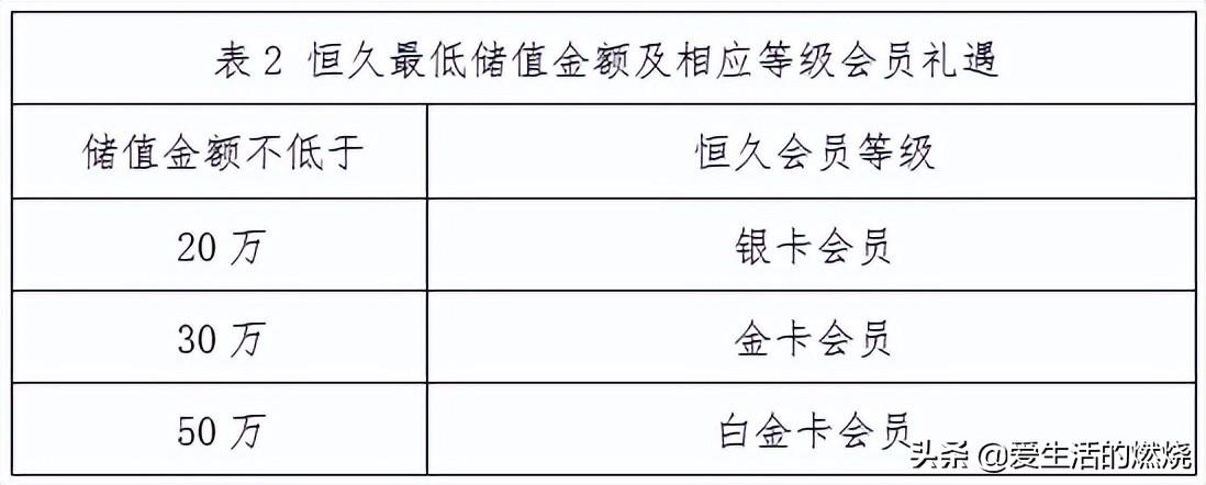 恒久会员储值标准和赠送的会员等级如下:
