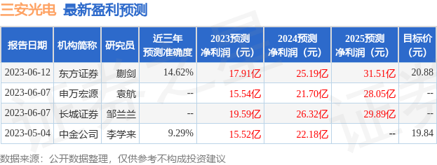 最新盈利预测明细如下: