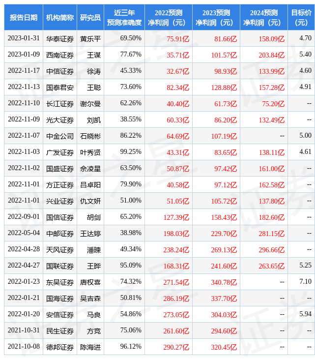 最新盈利预测明细如下: