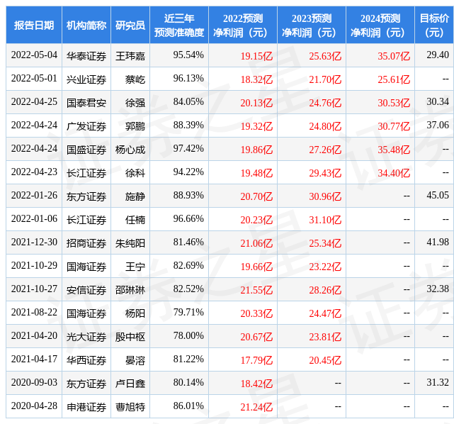 最新盈利预测明细如下: