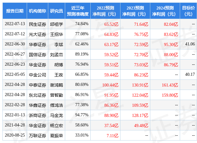 证券之星数据中心根据近三年发布的研报数据计算,浙商证券马金龙研究员团队对该股研究较为深入,近三年预测准确度均值高达94.77%,其预测2022年度归属净利润为盈利88.9亿,根据现价换算的预测PE为13.47。