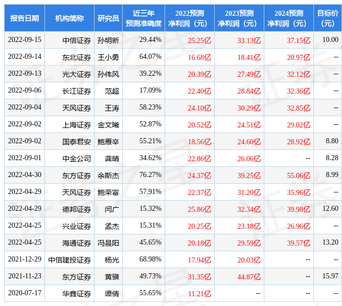 最新盈利预测明细如下: