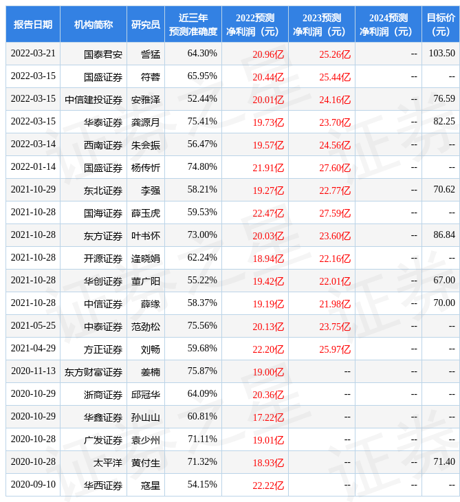 证券之星数据中心根据近三年发布的研报数据计算,东方财富证券姜楠研究员团队对该股研究较为深入,近三年预测准确度均值为75.87%,其预测2022年度归属净利润为盈利19亿,根据现价换算的预测PE为16.53。