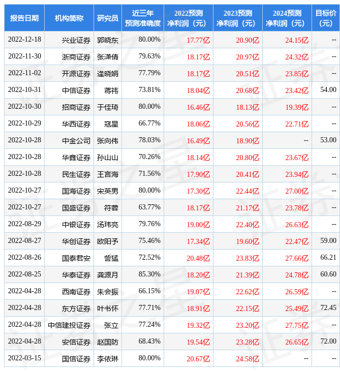 最新盈利预测明细如下:
