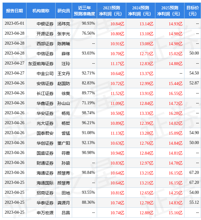 证券之星数据中心根据近三年发布的研报数据计算,华安证券杨苑研究员团队对该股研究较为深入,近三年预测准确度均值高达98.74%,其预测2023年度归属净利润为盈利10.5亿,根据现价换算的预测PE为20.26。