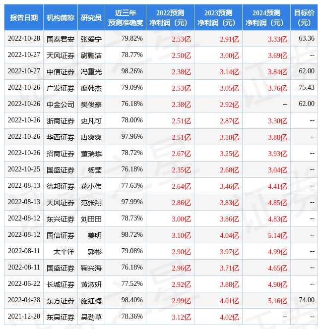 最新盈利预测明细如下: