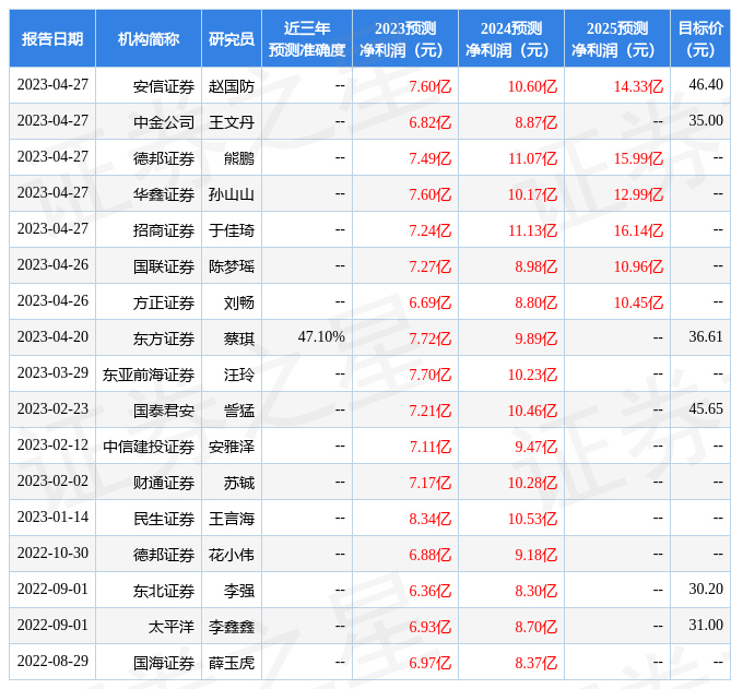 最新盈利预测明细如下: