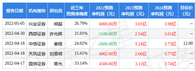 证券之星数据中心根据近三年发布的研报数据计算,国信证券曾光研究员团队对该股研究较为深入,近三年预测准确度均值为33.14%,其预测2022年度归属净利润为盈利4500万,根据现价换算的预测PE为160.5。
