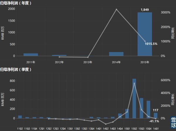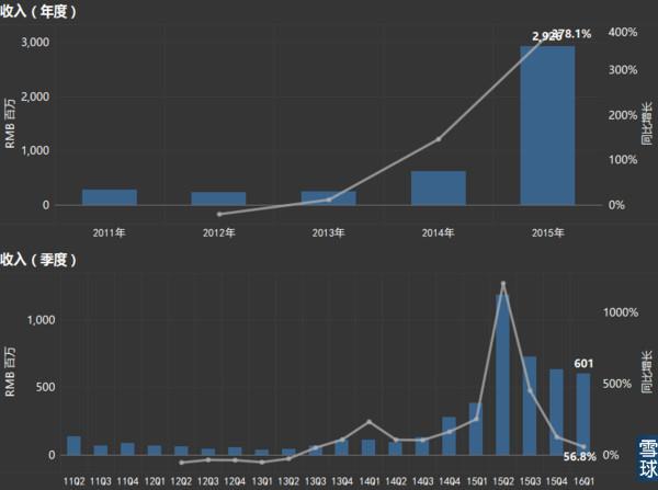 2015年全年收入达到29.3亿,同比增长378.1%;净利润(归属母公司)达到18.5亿,同比增长1015.5%;