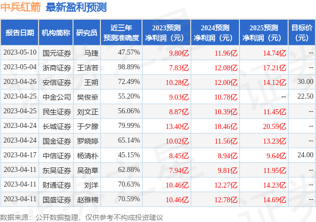 证券之星数据中心根据近三年发布的研报数据计算,浙商证券王洁若研究员团队对该股研究较为深入,近三年预测准确度均值高达98.89%,其预测2023年度归属净利润为盈利7.83亿,根据现价换算的预测PE为33.04。