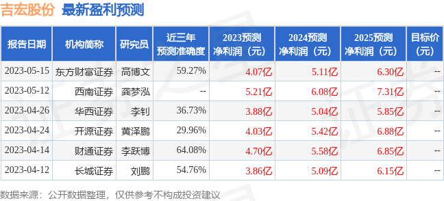 证券之星数据中心根据近三年发布的研报数据计算,财通证券李跃博研究员团队对该股研究较为深入,近三年预测准确度均值为64.08%,其预测2023年度归属净利润为盈利4.7亿,根据现价换算的预测PE为16.53。