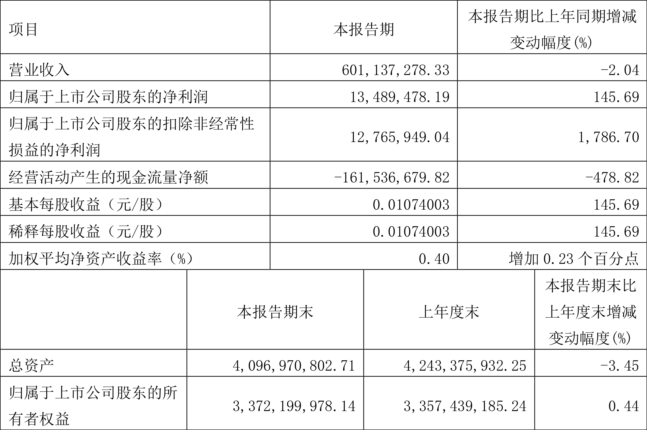 2023年一季度,公司加权平均净资产收益率为0.40%,同比上升0.23个百分点,环比下降1.63个百分点。