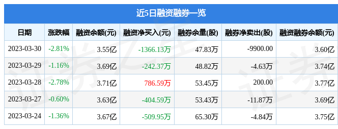 东方通信融资融券信息显示,融资方面,当日融资买入1562.3万元,融资偿还2928.43万元,融资净偿还1366.13万元。融券方面,融券卖出4.28万股,融券偿还5.27万股,融券余量47.83万股,融券余额513.73万元。融资融券余额3.6亿元。近5日融资融券数据一览见下表: