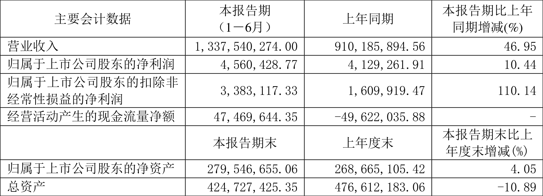 根据半年报,公司第二季度实现营业总收入6.55亿元,同比增长55.27%,环比下降4.01%;归母净利润378.97万元,同比增长103.04%,环比增长391.73%;扣非净利润246.55万元,同比增长507.81%,环比增长168.70%。