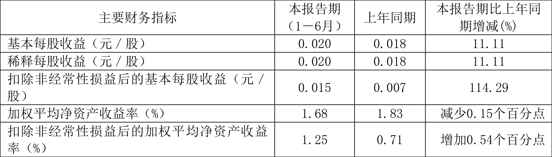2022年第二季度,公司净资产收益率为1.38%,同比上升0.56个百分点,环比上升1.09个百分点。