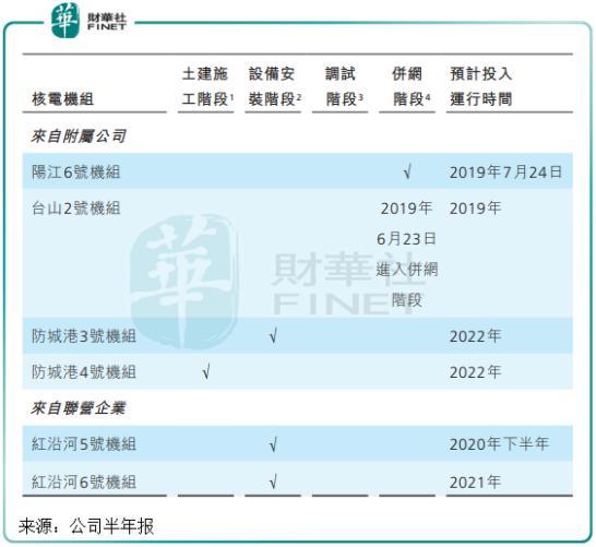 2019年上半年,台山1号机组的上网电量为5561.38吉瓦时,均高于其他地区平均每台机组的上网电量,而这是在其远低于公司运营管理的机组平均利用小时数3501小时的劣势下实现的,其利用小时数为3394小时。可见,先进的台山1号机组为公司带来的营收贡献之大。台山1号和2号单机组装机容量均为1,750兆瓦,高于其他机组,且该两个机组计划电量的试行上网电价为人民币0.4350元╱千瓦时(含税),自投产之日起至2021年底止执行,也高于其他机组,比公司所有机组中上网电价排名第二高的阳江机组0.4153元╱千瓦时(含税)高出0.0197元╱千瓦时(含税)。所以,台山2号机组投入运营后,将与1号机组一起提振公司发电量。