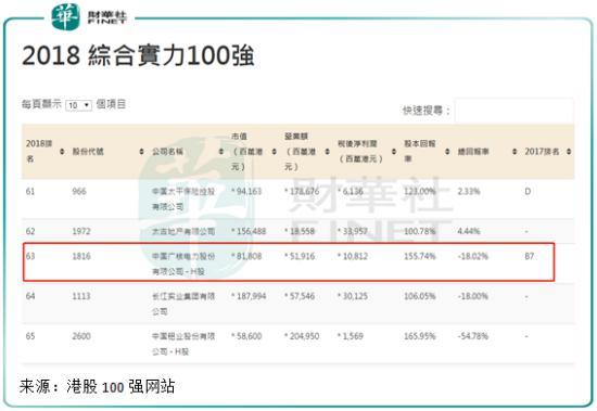 中广核作为我国核能一哥,技术的不断进步及营销渠道的优化,带动了公司多年来的营收节节攀升。这种可持续性的发展优势是能源企业中最宝贵,同时也是很难得的,所以我们看到在2018年度的《港股100》强评选中,中广核强势入围“综合实力100强”榜单,比长江实业(01113-HK)领先一个排名。