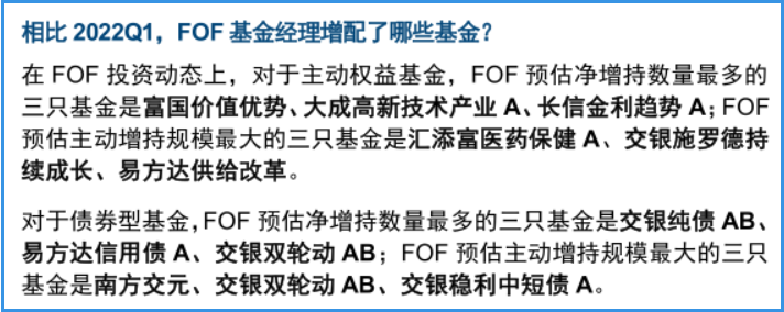 相对2022Q1,对于主动权益类基金,FOF基金经理预估净增持数量最多的三只基金分别是