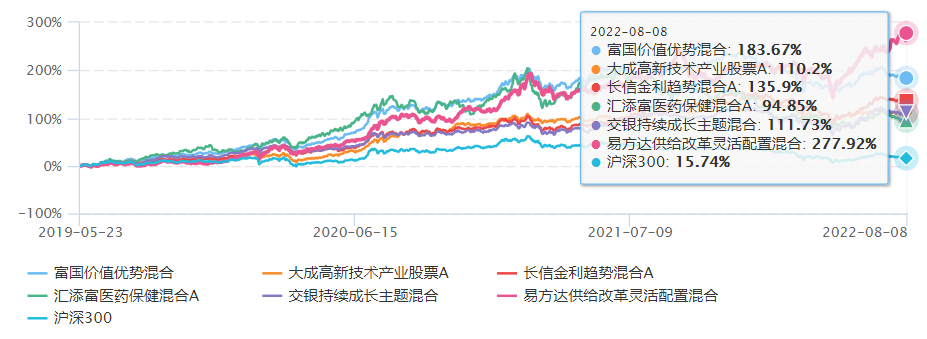 富国价值优势、大成高新技术产业A、长信金利趋势A