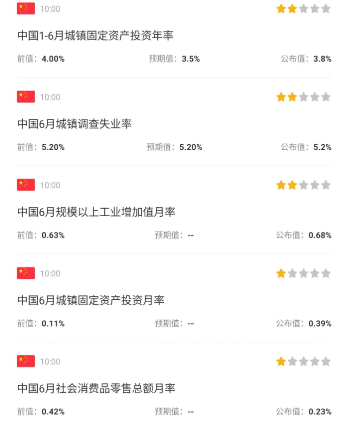 有的朋友可能想问了,二季度GDP数据是6.3%,不是挺高的吗?完全超过了今年定的5%。这是因为去年的二季度GDP仅为0.4%,去年的基数很低,所以市场预期今年二季度起码在7以上,机构给的预期是7.3%,相差了1%。