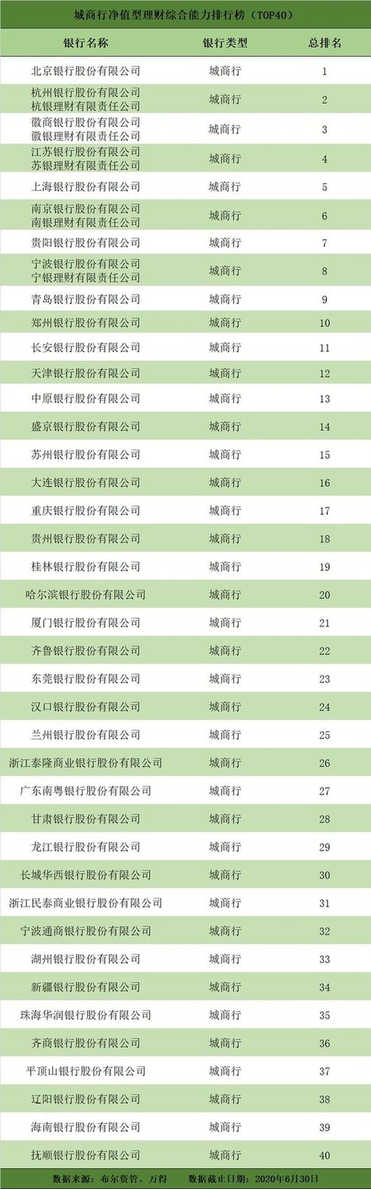 城商行中,排名前十的银行还有江苏银行(苏银理财)、上海银行、南京银行(南银理财)、贵阳银行、宁波银行(宁银理财)、青岛银行和郑州银行等。