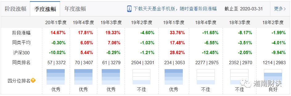 宝盈的季度排名除了18年下半年和19年2季度,其余表现都是不错的。