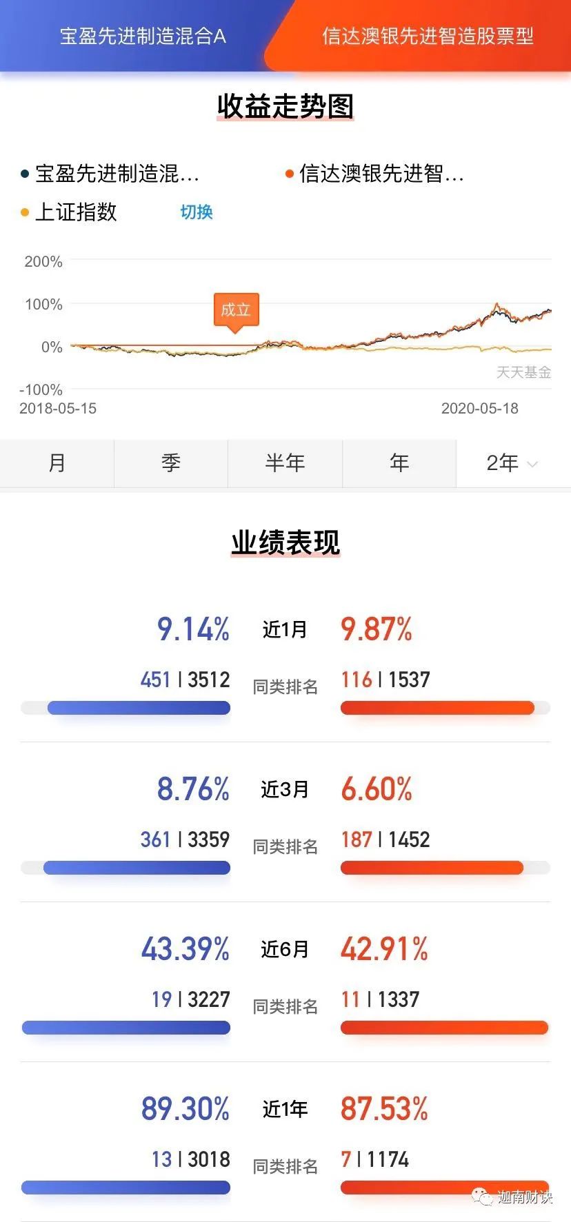 而信达澳银先进智造是19年年初成立的,2季度表现不佳,其余都是表现优秀。