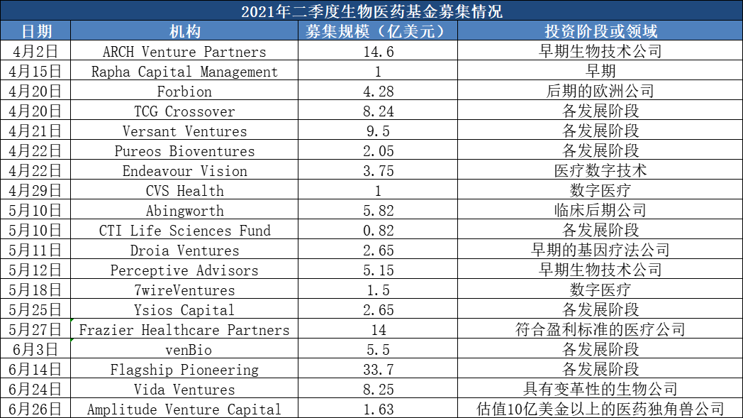 生物医药基金已经完成募集126.09亿美元,比一季度高出22.8%。