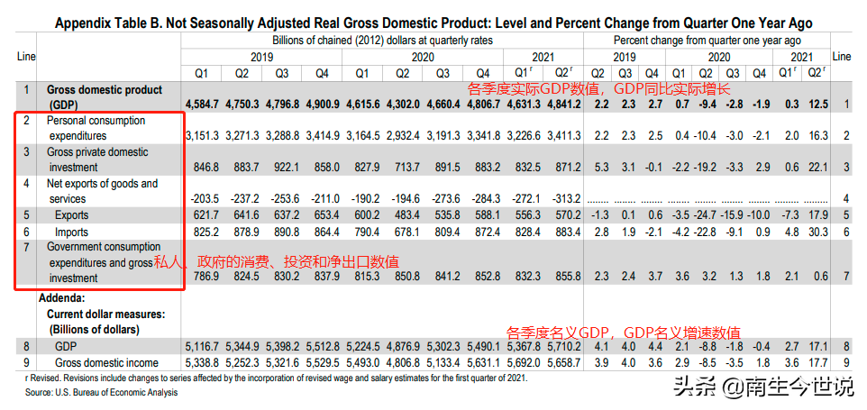 当然不是,12.5%这可不是南生自己写的数字,而是美国商务部公布的“第二季度经济发展报告”中给出的数字,这是官方数字。那问题来了,第二美国经济增速为什么是12.5%,不是17.1%呢?难道刚才的计算有误?