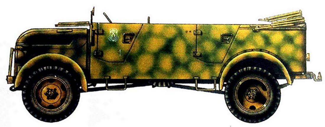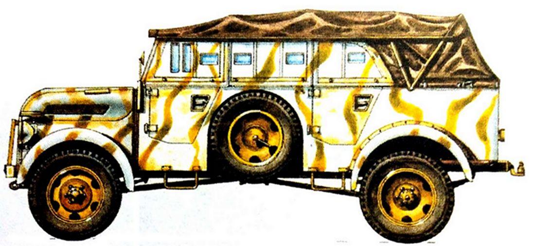 斯太尔(Steyr)军用小车是二战开始后才正式装备德军,型号主要为斯太尔1500A(Steyr typ 1500A/2000A),其中斯太尔1500A/01型小车设备配置较高,车身坚固耐用,安装了空气冷却的8缸发动机动力,动力系统强劲,有良好的越野性能,且可乘坐8人之多,因而大多被德军用作高级军官战场专用的指挥车,也有部分用作德国高官的座驾,到了战争后期,还有一些被改作了运兵车用。