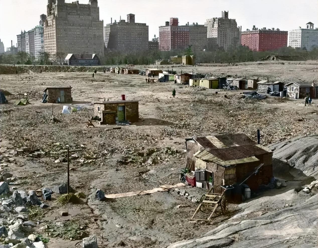 穷则怒,此时的美国人没有当年的意气风发,他们开始疯狂的咒骂着一切,咒骂胡佛,甚至给纽约市中心旁边的平民窟叫作“胡佛村”。