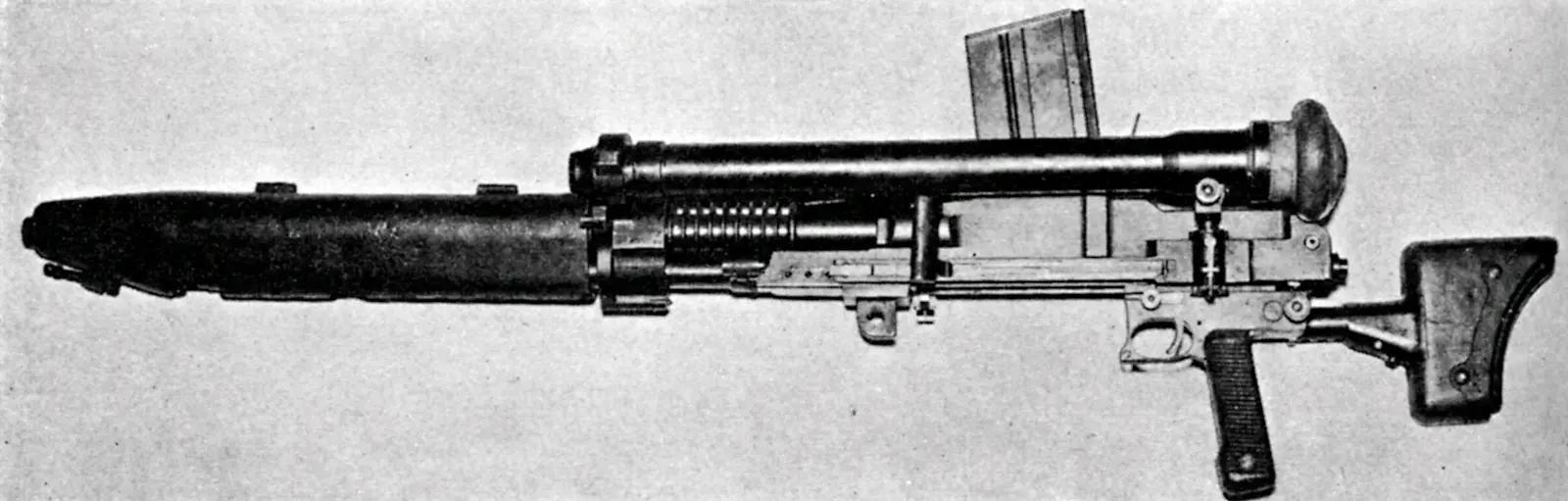 可以说和传统冲锋枪显得格格不入,共生产了7000多支,登场于东印度群岛和太平洋战场。