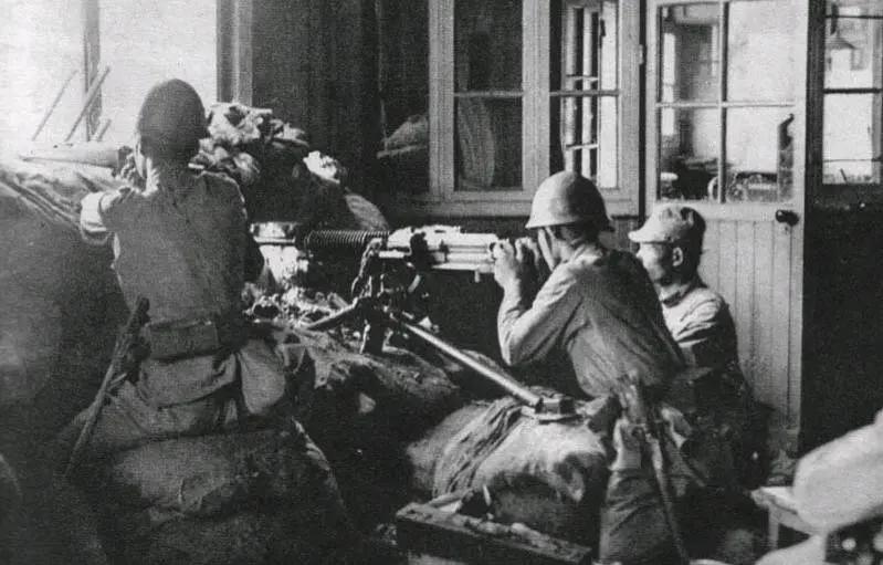 92式风冷重机枪由南部麟次郎哈奇开斯机枪为原型设计,是1932年后日本军队的标准重机枪。