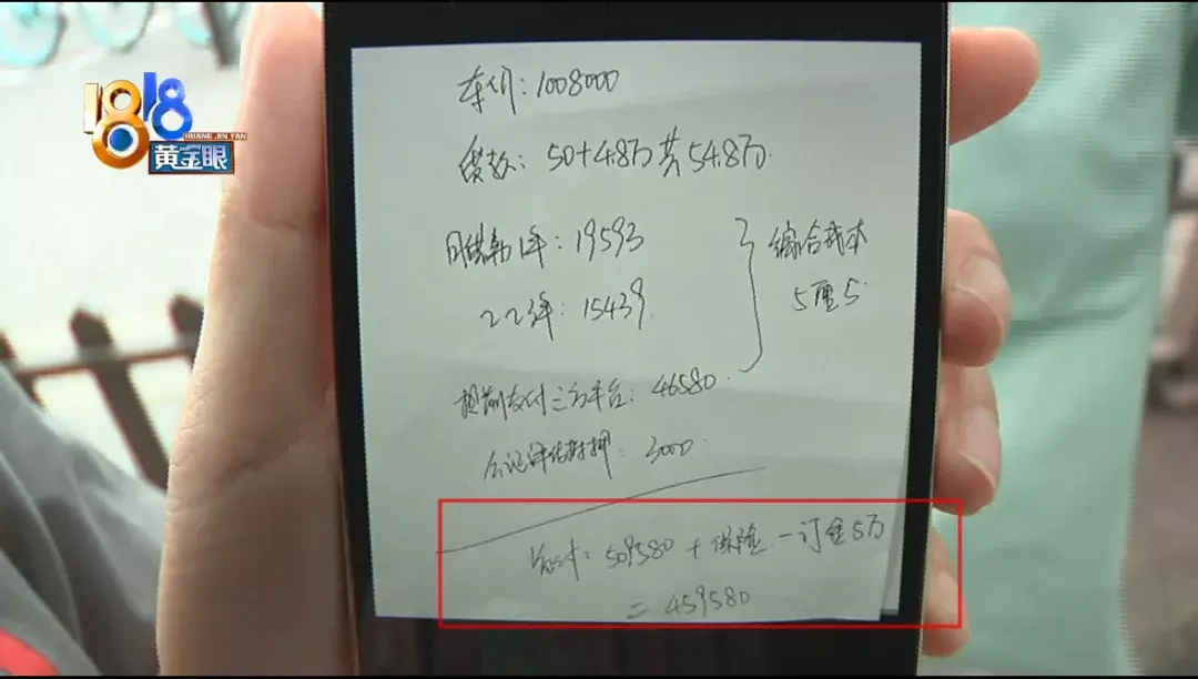 :“当时谈好的,合同里面的车价是一百万零八千,