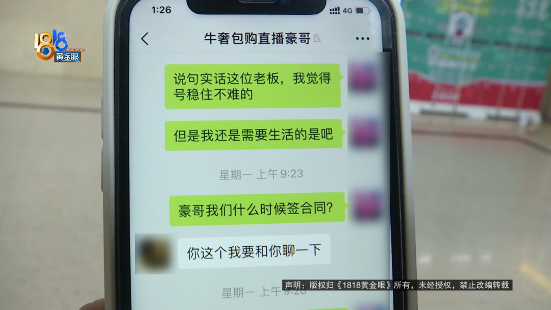 他们说试岗期是不签合同的,后来我又再次追问的时候,大概是在七天之后,播了七八场之后,我们去问他到底什么时候签合同,