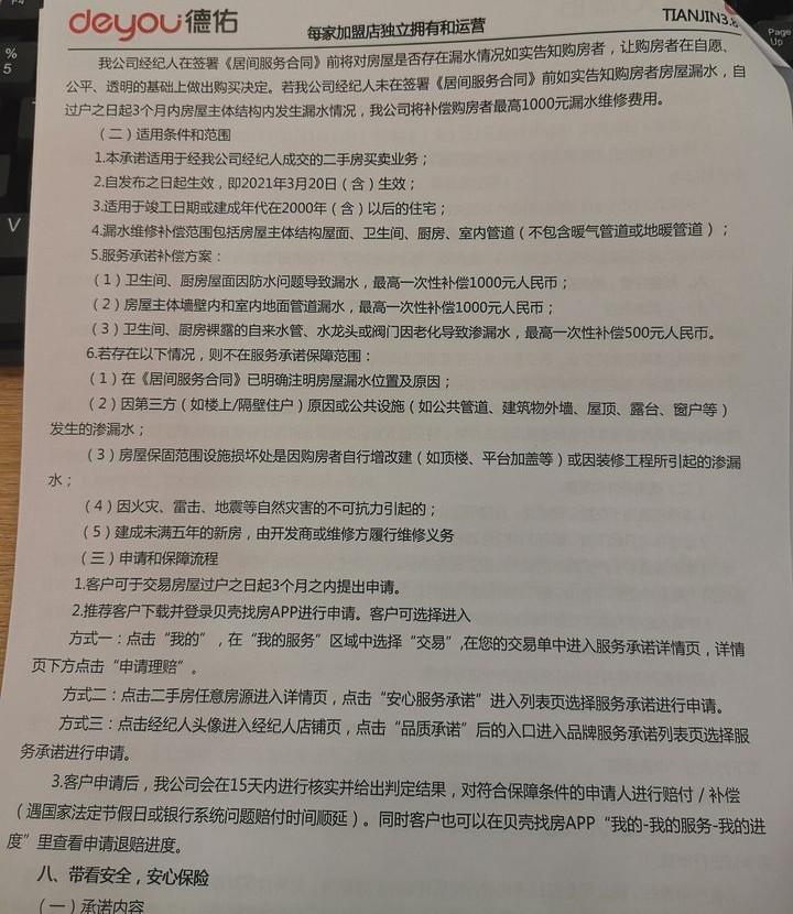 只是针对2000年之后的房子了,80-90年代的房子还是不承诺。毕竟年头长了,漏水概率很大。之前有一个案例,确实漏水了,客户找总部,总部找门店,最后还是业务员自己出钱修的。