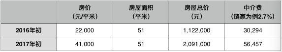 上图很直观,房价上涨86.4%,中介费同样上浮86.4%,中介费是随着房屋价值而上涨或是下跌。房价上涨给房主,房产投资者带来丰厚回报的同时,中介的收益也成正比的攀升。