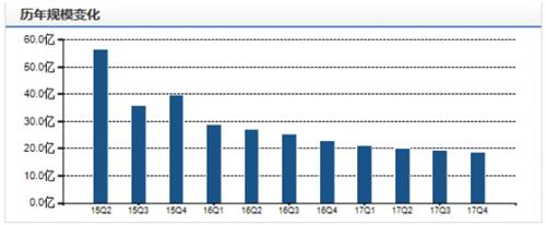 资料显示,中银新动力成立于2015年2月13日,在牛市效应下净值也快速上涨。但是自2015年6月30日开始三个月时间,值也从最高点的1.92元跌到了0.907元,盈利转身化为乌有。2015年末规模还有近40亿元,到2017年末其净资产已降至18.83亿,已腰斩再腰斩。