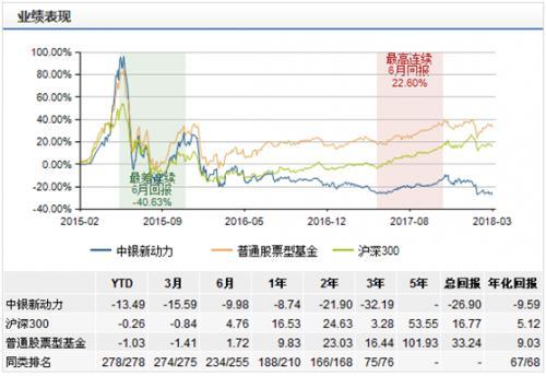 从上表还可以看到多次登上黑榜的“老面孔”中银新动力(000996)。在今年的春季反弹行情中并没有给投资者带来合理的收益,截止3月23日已跌去13.49%,在同类排名里,今年来涨幅列倒数第一。