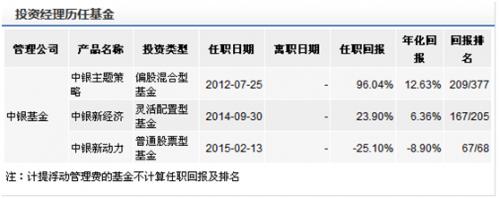 不过净资产规模大幅萎缩,该基金的基金经理却很稳定。史彬于2007年加入中银基金管理有限公司,先后担任股票交易员、研究员、基金经理助理等职。2012年7月至今任中银主题策略基金基金经理;2014年9月至今任中银新经济基金基金经理。具有8年证券从业年限。具备基金、证券、银行间本币市场交易员从业资格。该基金成立于2015年2月,基金经理为史彬,成立至今亏损26.9%,同类排名倒数第二。