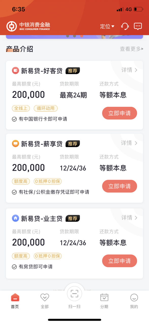来源:中银消费金融APP首页