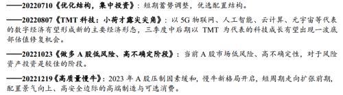 。正如我们在年度策略中提到的,进入2023年,海外紧缩及内需疲弱这两大压制因素都将极大概率获得缓和。国内短周期也即将从宽货币紧信用经济下的衰退后期逐步迈向宽信用稳货币经济回温的扩张前期,信用回温将成为明年A股最为重要的逻辑主线。2023年国内即将步入2020年开启的长波萧条期内的第二库存周期,中短周期有望迎来上行共振。经历了近3年的压制,明年国内信用环境有望得到更为明确的修复,货币政策有望仍将维持合理充裕,在这样的背景下,资本市场有望打开新的慢牛格局。进入1月,市场有望迎来开年布局良机。