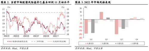 。12月除创业板外,市场主要指数以-1.97%的跌幅收官。市场短期依旧在政策回温的强预期与经济数据的弱现实之间反复博弈。首先,防疫与地产政策的转向带来的回暖预期在11月的市场行情中已经有所体现。而进入12月,实体经济数据持续低迷,工业企业仍处于加速去库阶段,景气指标和高频数据也未现企稳迹象。12月市场从前期的强预期逐步转向弱现实交易阶段。经历了12月的小幅调整,当前市场股债风险溢价水平已基本回到11月初水平。参考海外防疫政策放开后的市场恢复路径,防疫政策的放松对于经济复苏的正面影响不是一触即发,相反的,在放开初期对于疫情的担忧甚至会造成制造业、消费被冲击。虽然居民消费意愿及消费能力仍存在较大复苏空间,但复苏路径并非一帆风顺,预期与现实的博弈所带来的市场波动在所难免。