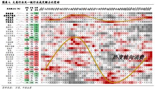 本周一级行业在此前超跌背景下迎来普遍反弹,领涨方向主要聚集在此前跌幅较深的电源、电气设备、军工、电网等方向。本周,硬科技成长行业(相对收益视角)与低估值稳增长行业跷跷板效应延续,高景气成长大类在连续7周跑输后迎来触底反弹,低估值稳增长行业相应开启调整。成交额占比方面,周频交投热度转向成长大类,趋势交易热度仍处于消费大类。科技成长行业主由传媒/军工/电新行业周占比触底反弹提升所带动。金地稳大类成交额占比稳定,其中电力公用行业成交热度提升明显,值得关注。消费大类成交额占比小幅回落,医药行业降温为主要负贡献因素。分位水平来看,周期和中游科技处于年内较低水平,成交额占比52周分位回落至2%/32%。