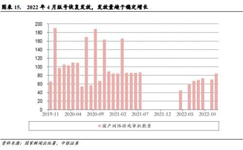 。12月28日,国家新闻出版署分别公布了2022年12月国产网络游戏审批信息和2022年进口网络游戏审批信息,共84款国产游戏和44款进口游戏获批。自2022年4月版号恢复发放以来,历次版号发放数量整体呈现稳定增长态势。此外,本次进口版号重启发放,距离上一次发放进口游戏版号时间已超过 1年半,具有较高海外热度、有望为腾讯游戏收入贡献高增量的《无畏契约》获得此次进口版号审批,此外腾讯的《宝可梦大集结》,网易游戏的《突袭:暗影传说》、《幻想生活》,完美世界《双点医院》、《筑梦颂》等一批重点游戏均在此次版号审批名单之中,相关公司均有望受益。12月国产版号稳定发放及进口版号重启发放进一步表明行业进入常态化监管,行业有望持续受到提振。