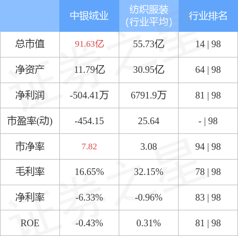 该股主要指标及行业内排名如下: