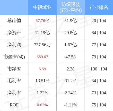 根据近五年财报数据,证券之星估值分析工具显示,中银绒业(000982)行业内竞争力的护城河一般,盈利能力较差,营收成长性一般。财务可能有隐忧,须重点关注的财务指标包括:应收账款/利润率。该股好公司指标1.5星,好价格指标1星,综合指标1星。(指标仅供参考,指标范围:0 ~ 5星,最高5星)